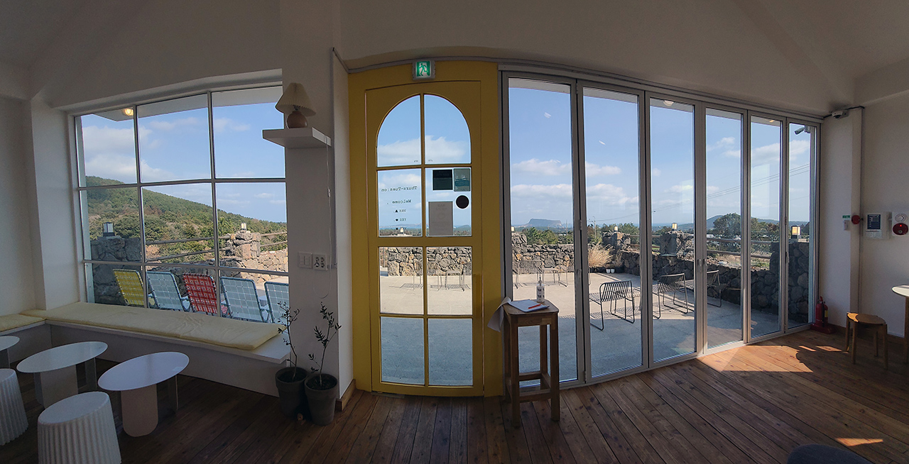 카페에서 성산일출봉을 바라보는 방향은 통유리로 돼 있어 전망이 좋다.
