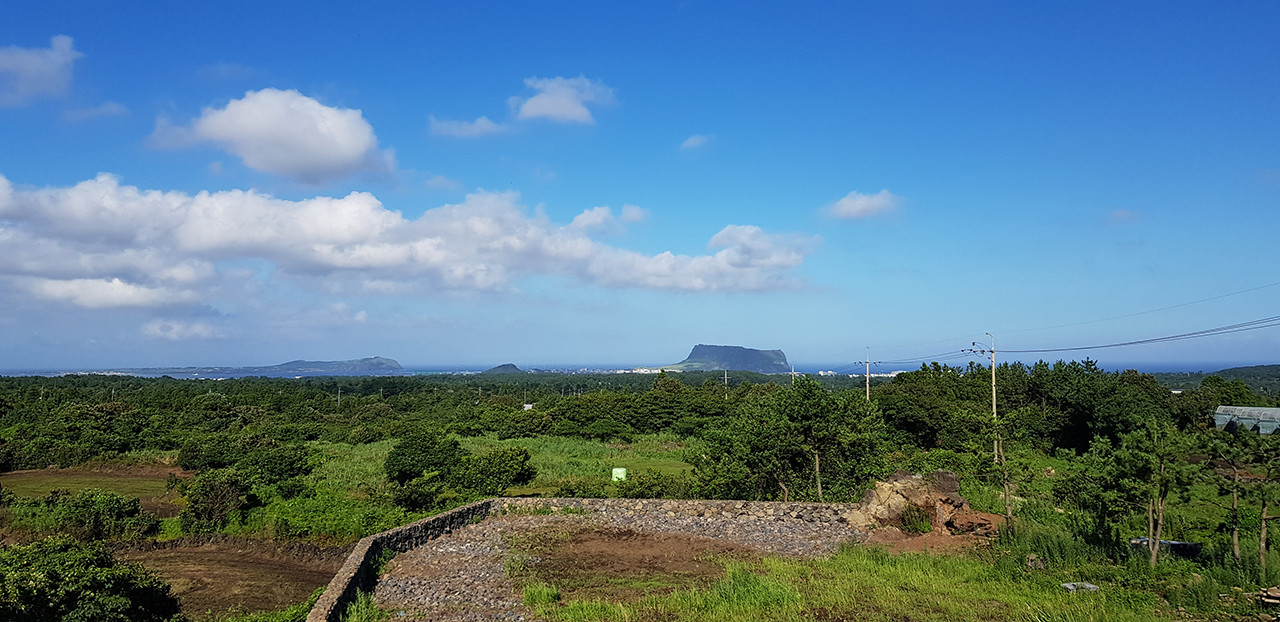 계단을 오르다보면 오른쪽으로 멀리 성산일출봉, 성산항, 우도가 들어온다. 멀리서 보는 바다 경치는 언제나 멋진 법이다.