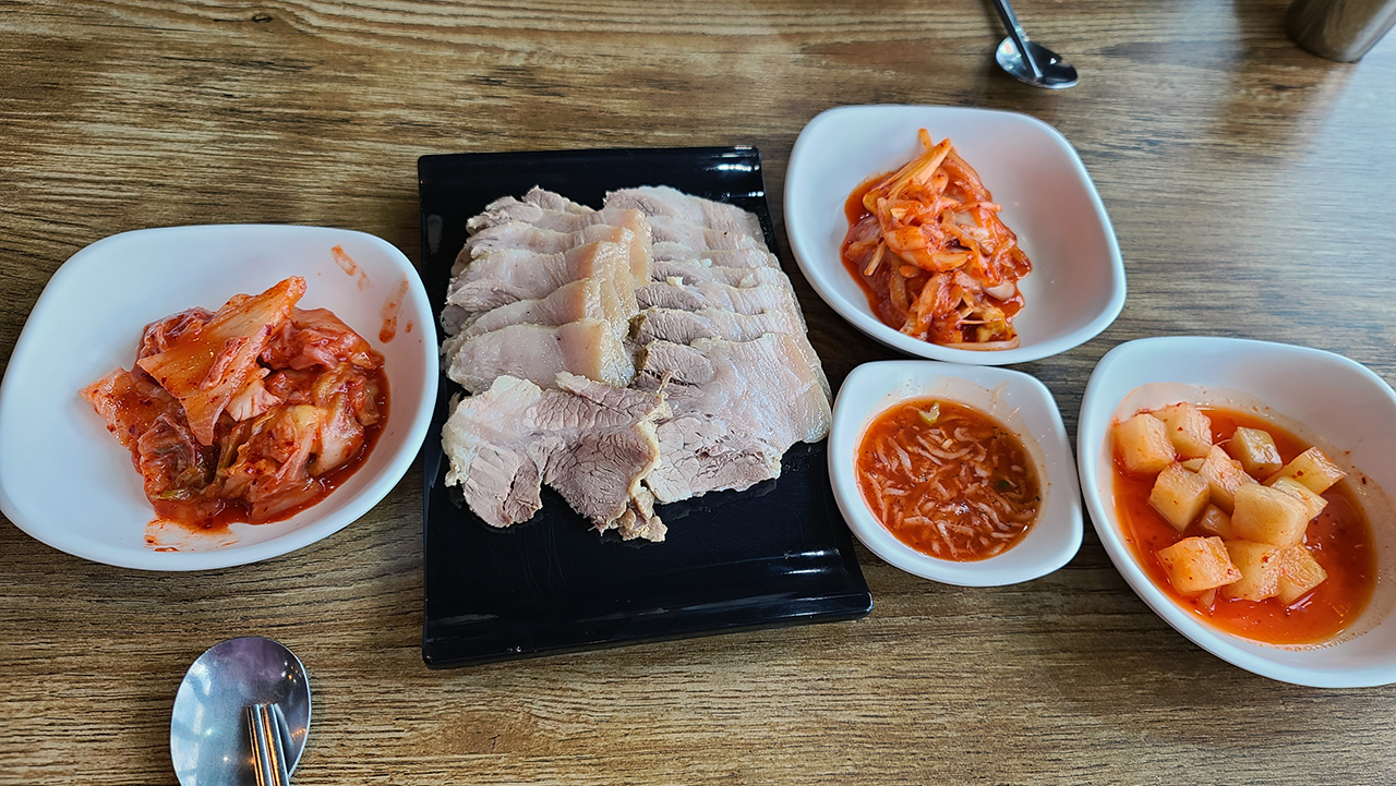 한시가 넘은지라 아침 일찍부터 이동한 일행은 게눈 감추듯 수육을 먹어 치웠다.